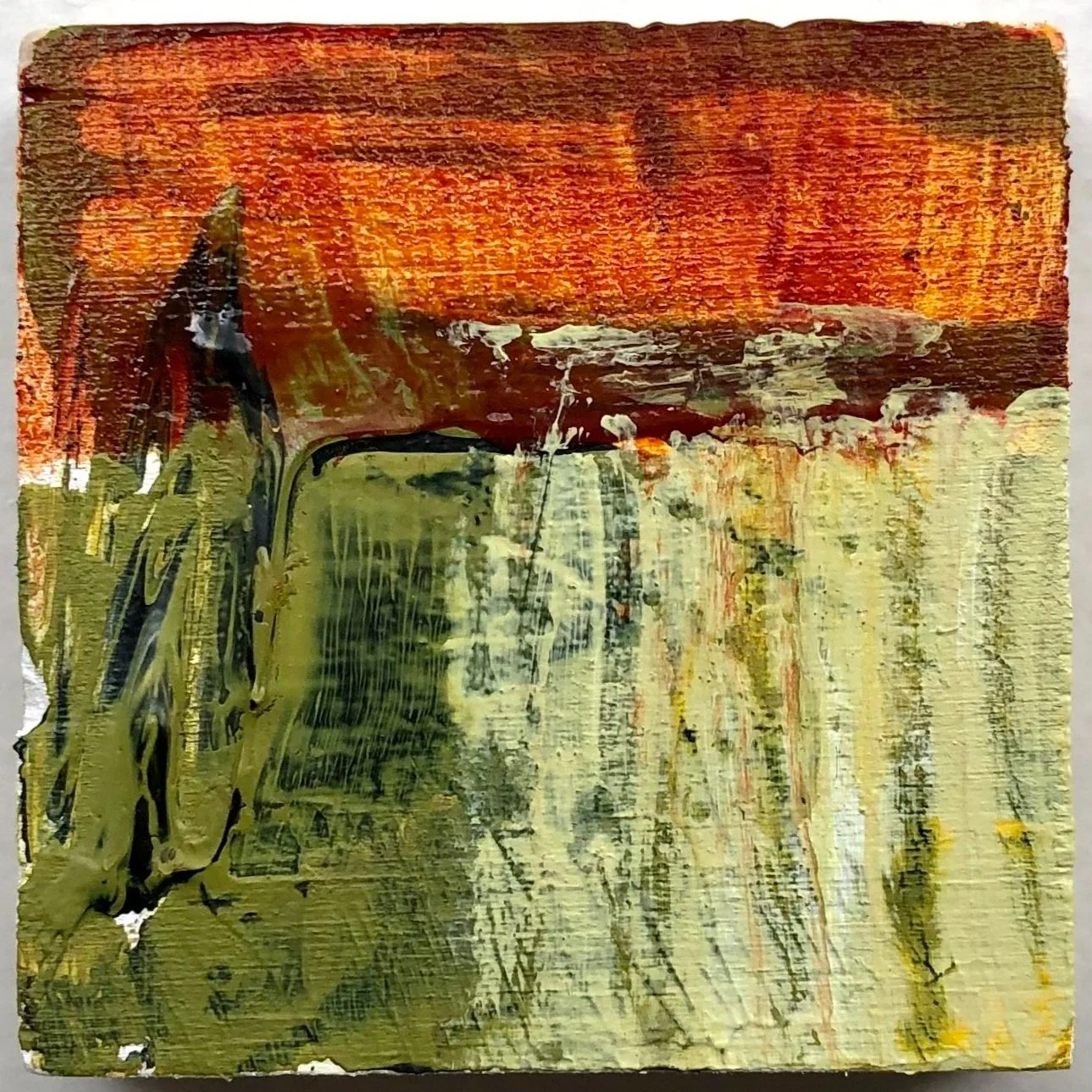 The size of the work you do affects so many things about the process. If you work large, try buying some small canvases and do a small series. If you usually work small, do the opposite - find some large canvases or stretch your own. Or buy a large roll of kraft paper and charcoal and have at it. Expand beyond what you know. Below are three small paintings on small wooden squares I found at a Chinese shop in Spain. Each one is only 1.5” square, but when mounted in groups have a much larger impact.