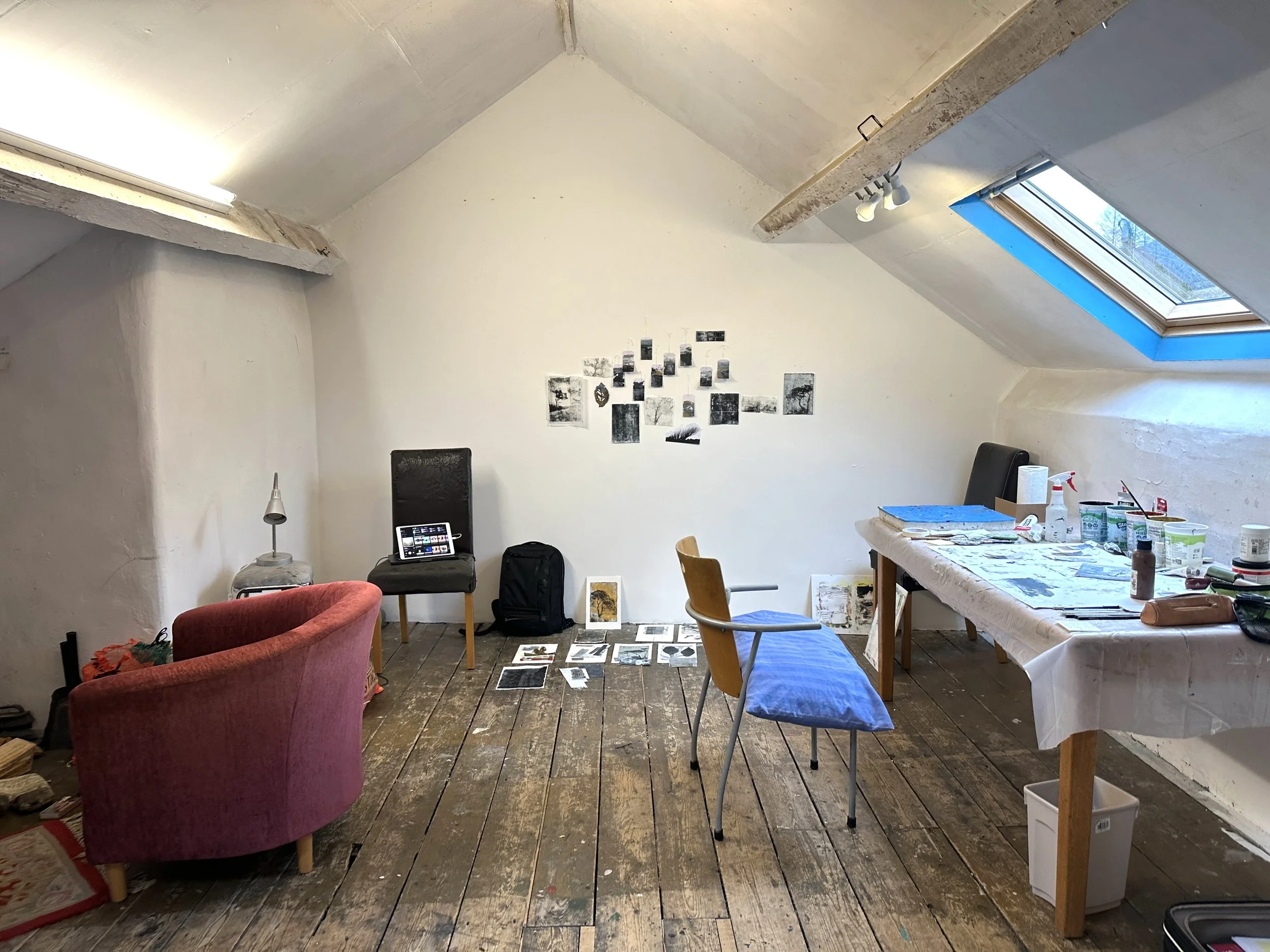 My spacious attic studio at Stiwdio Maelor. Early days still. ©Amy Guion Clay 2026